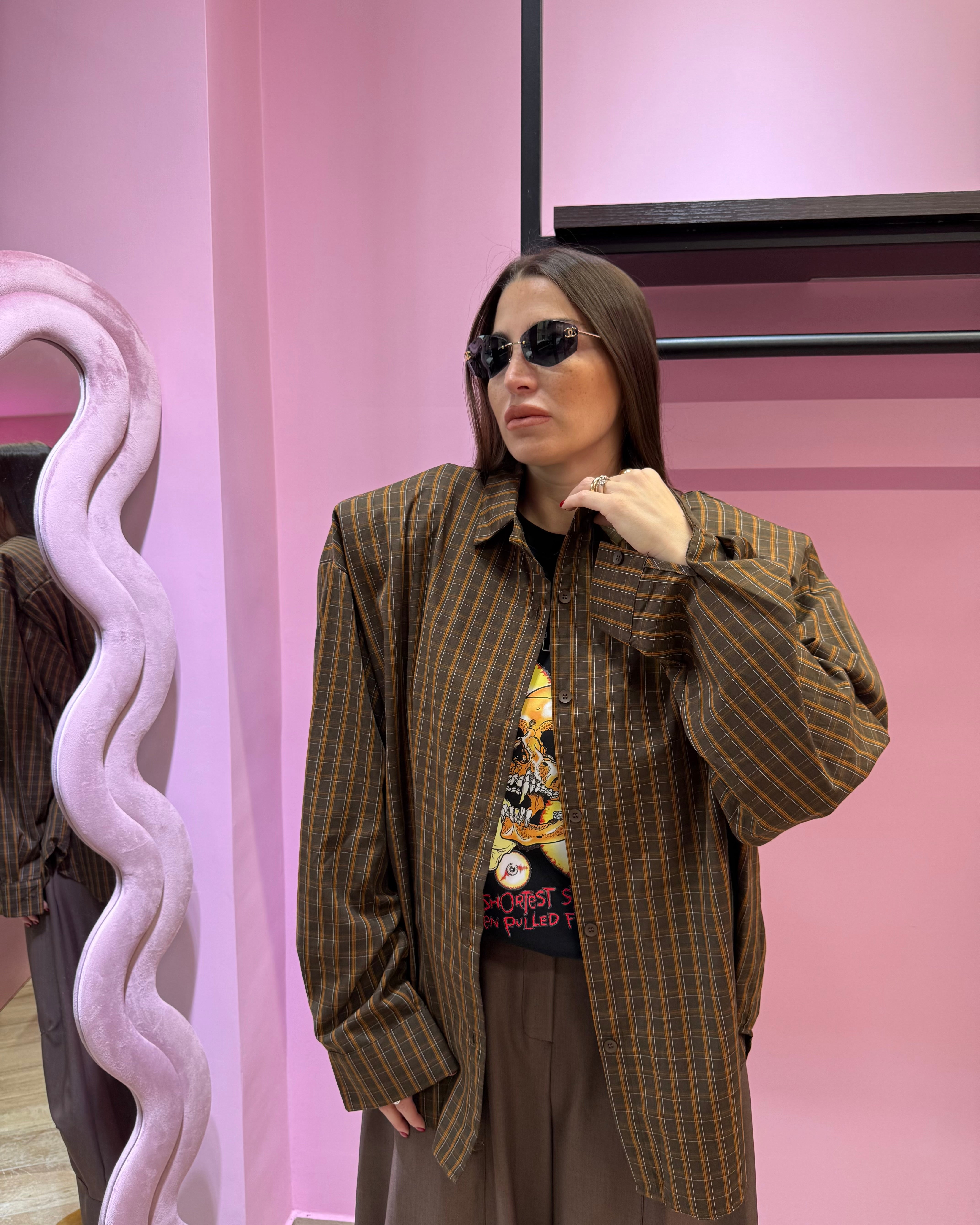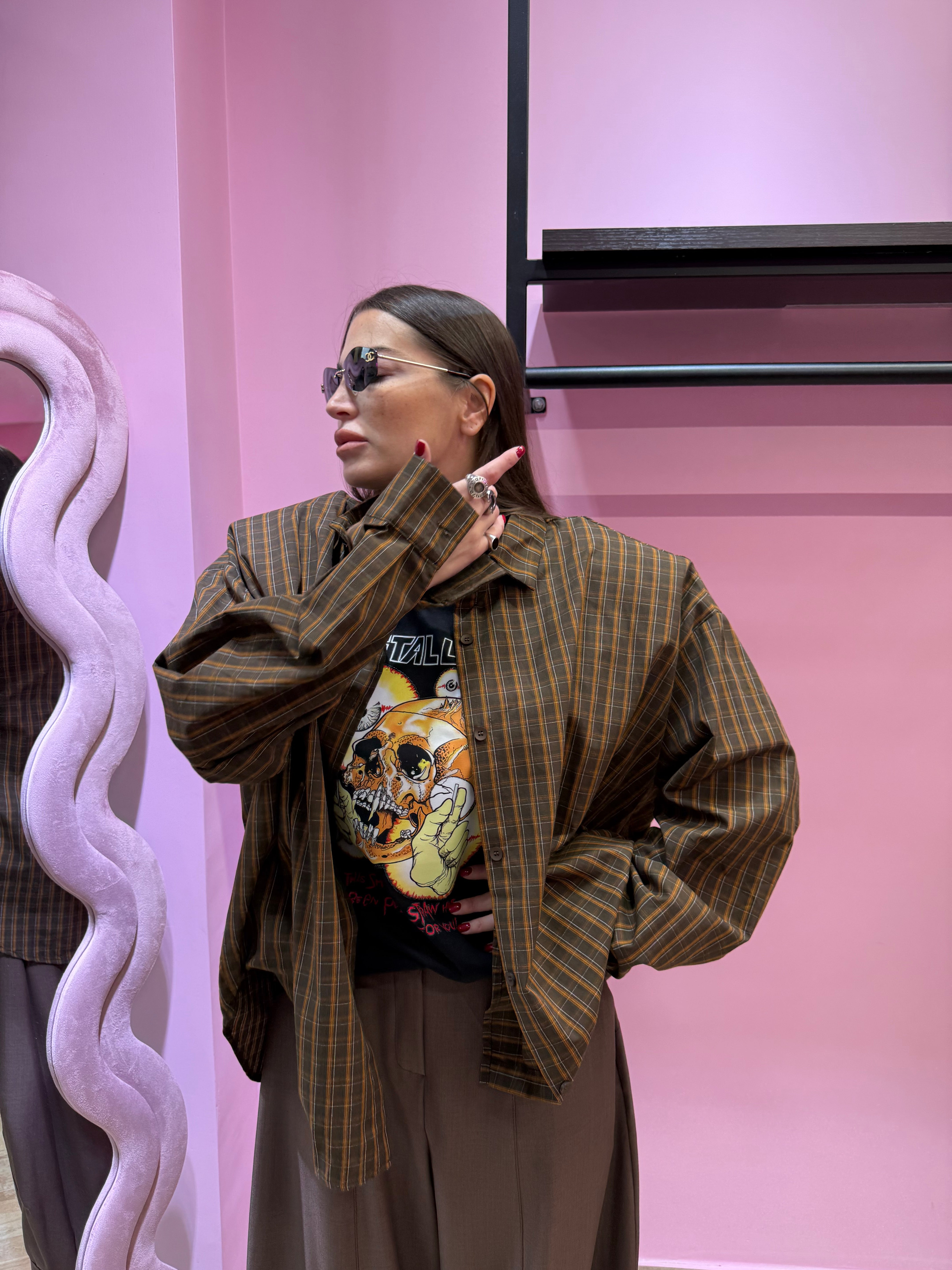 Camicia a quadri marrone w45002