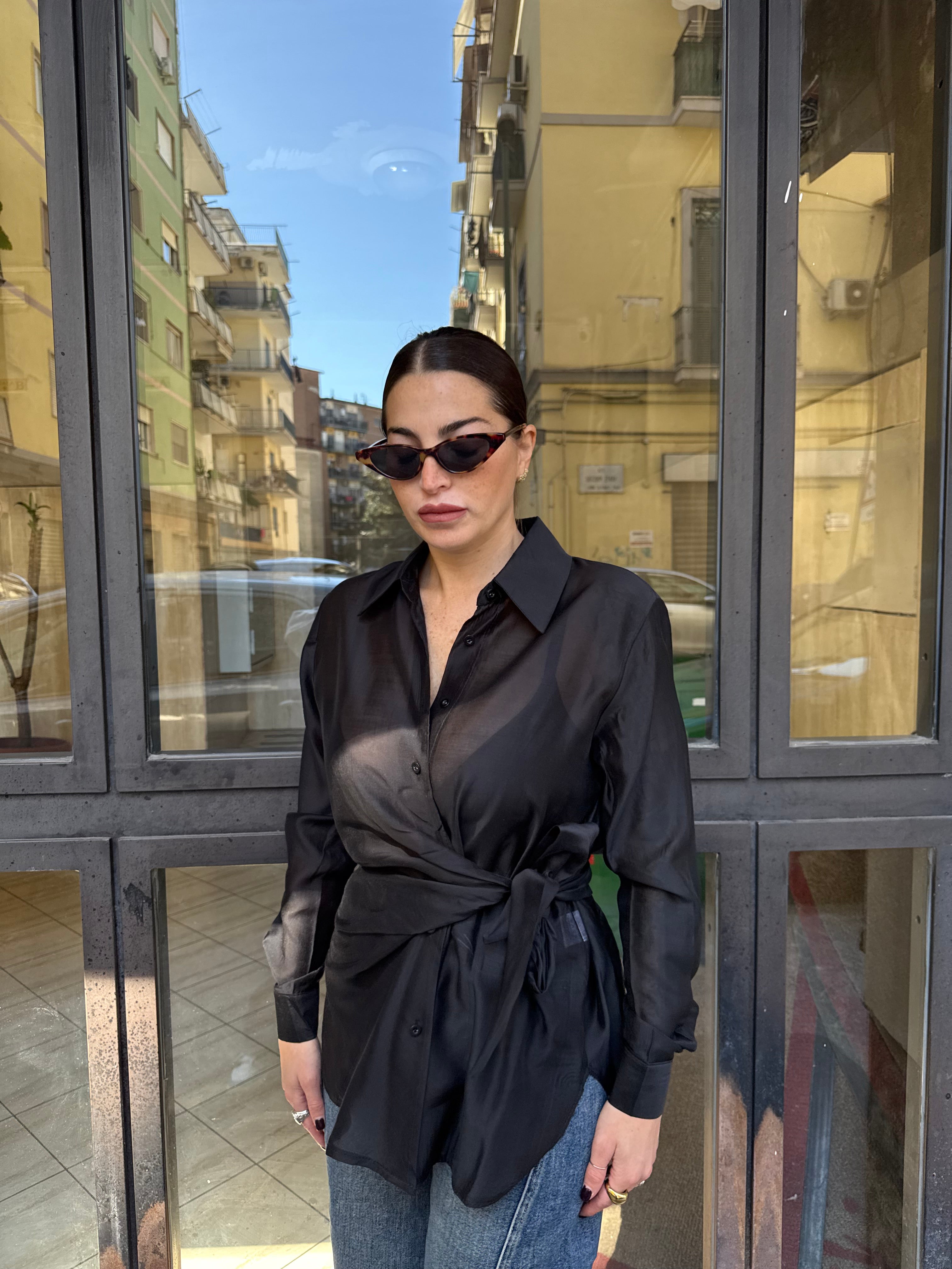 Camicia semi velata con nodo