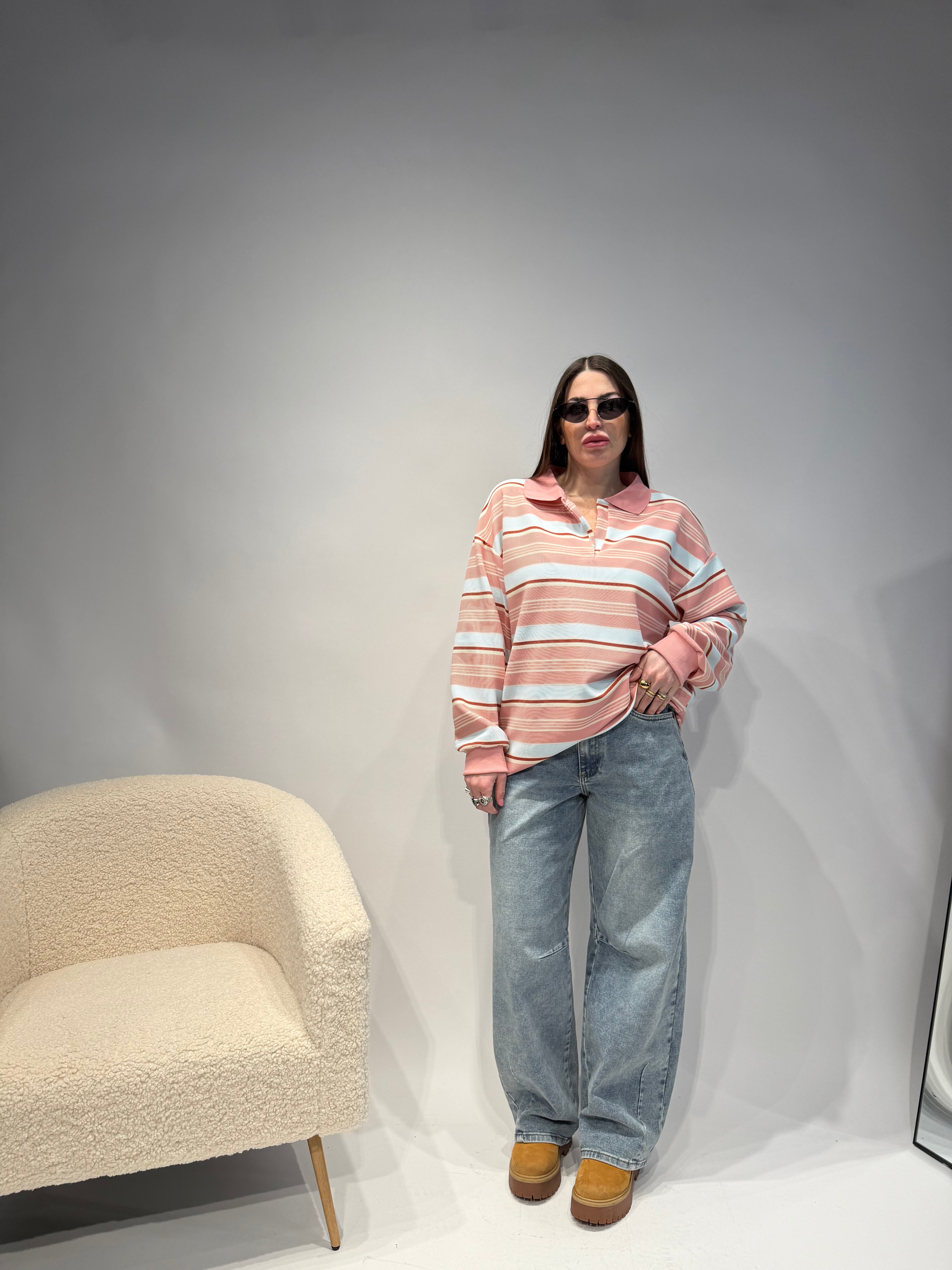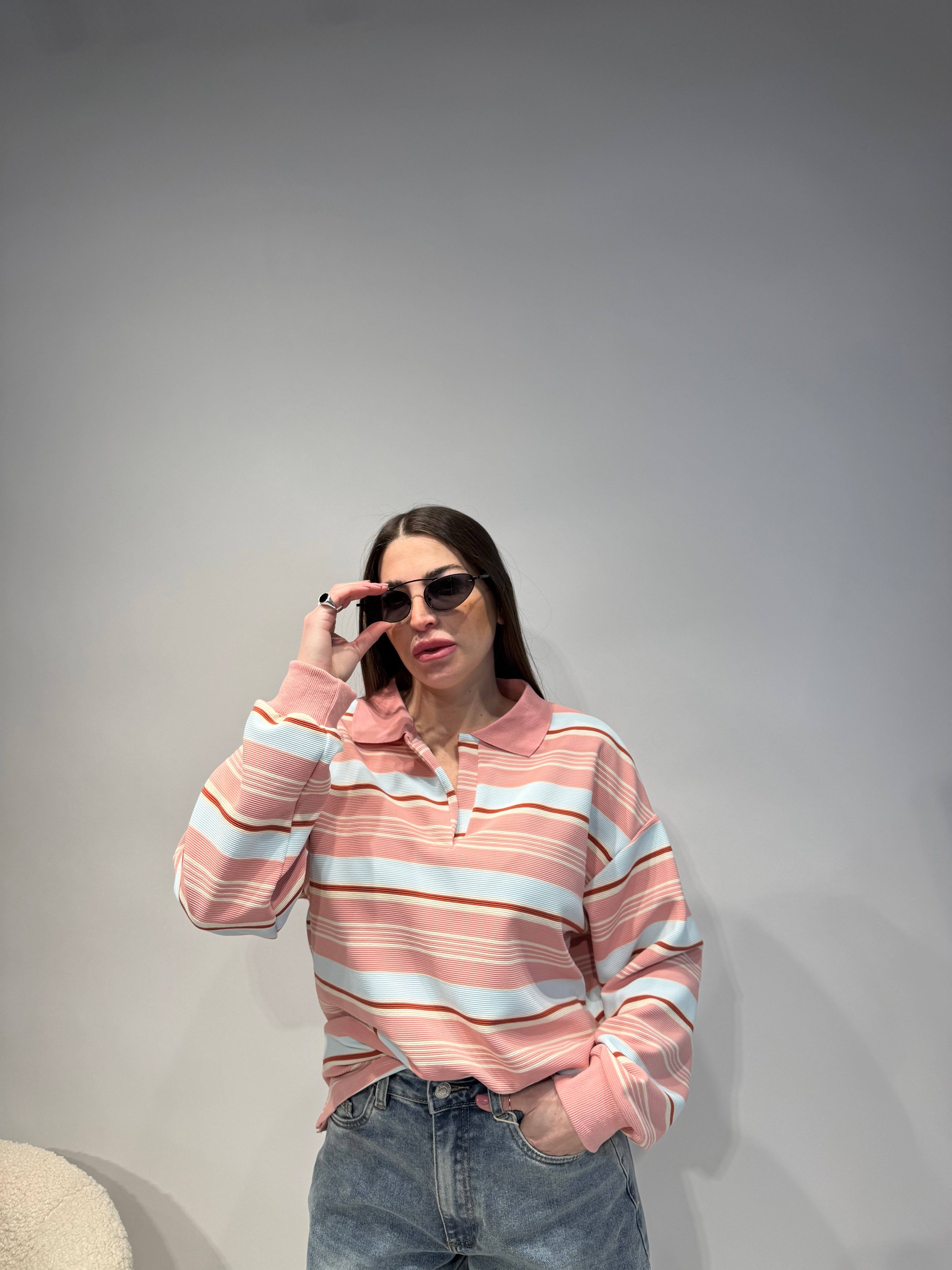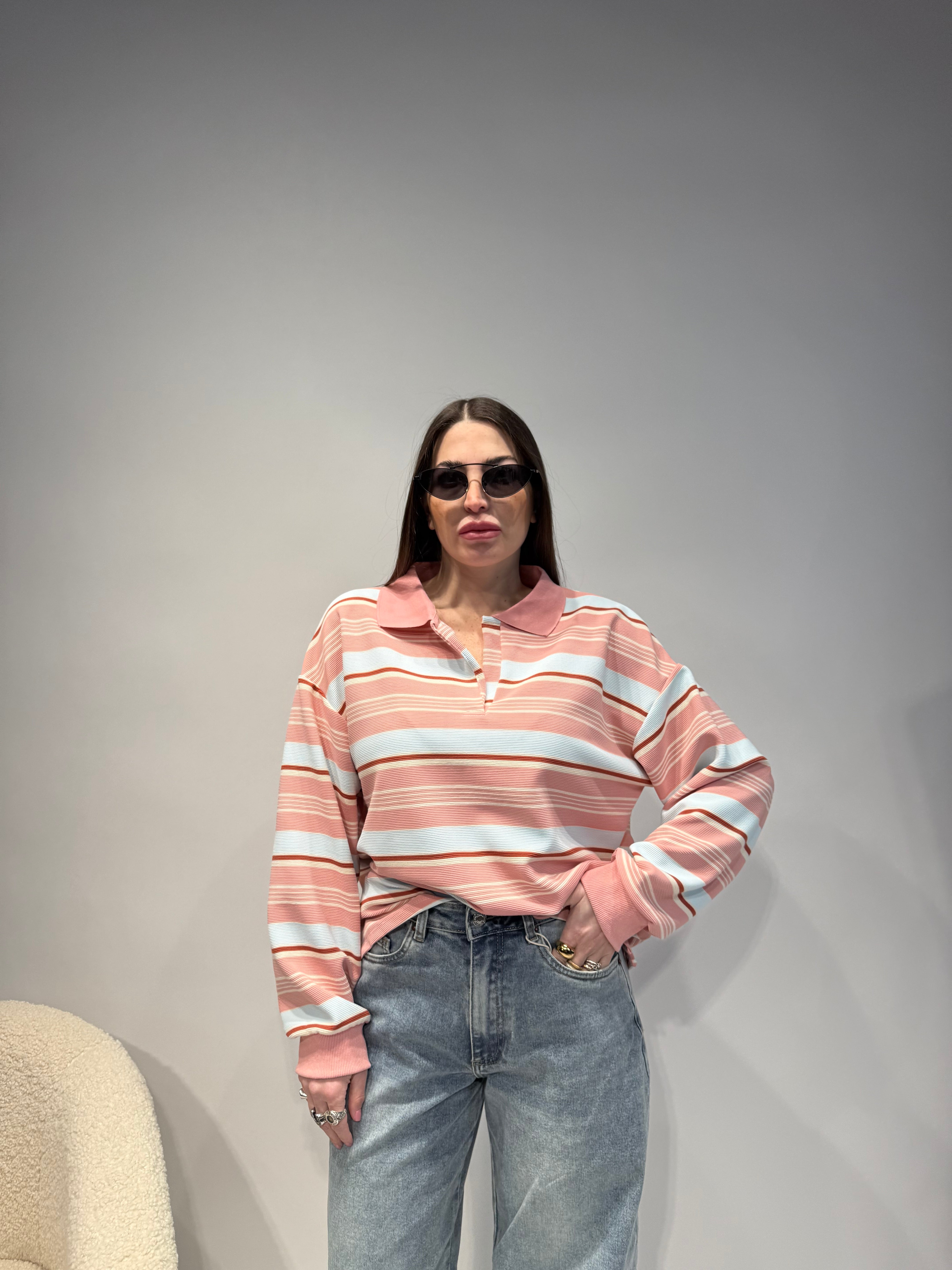 Polo a righe Rosa-Azzurro