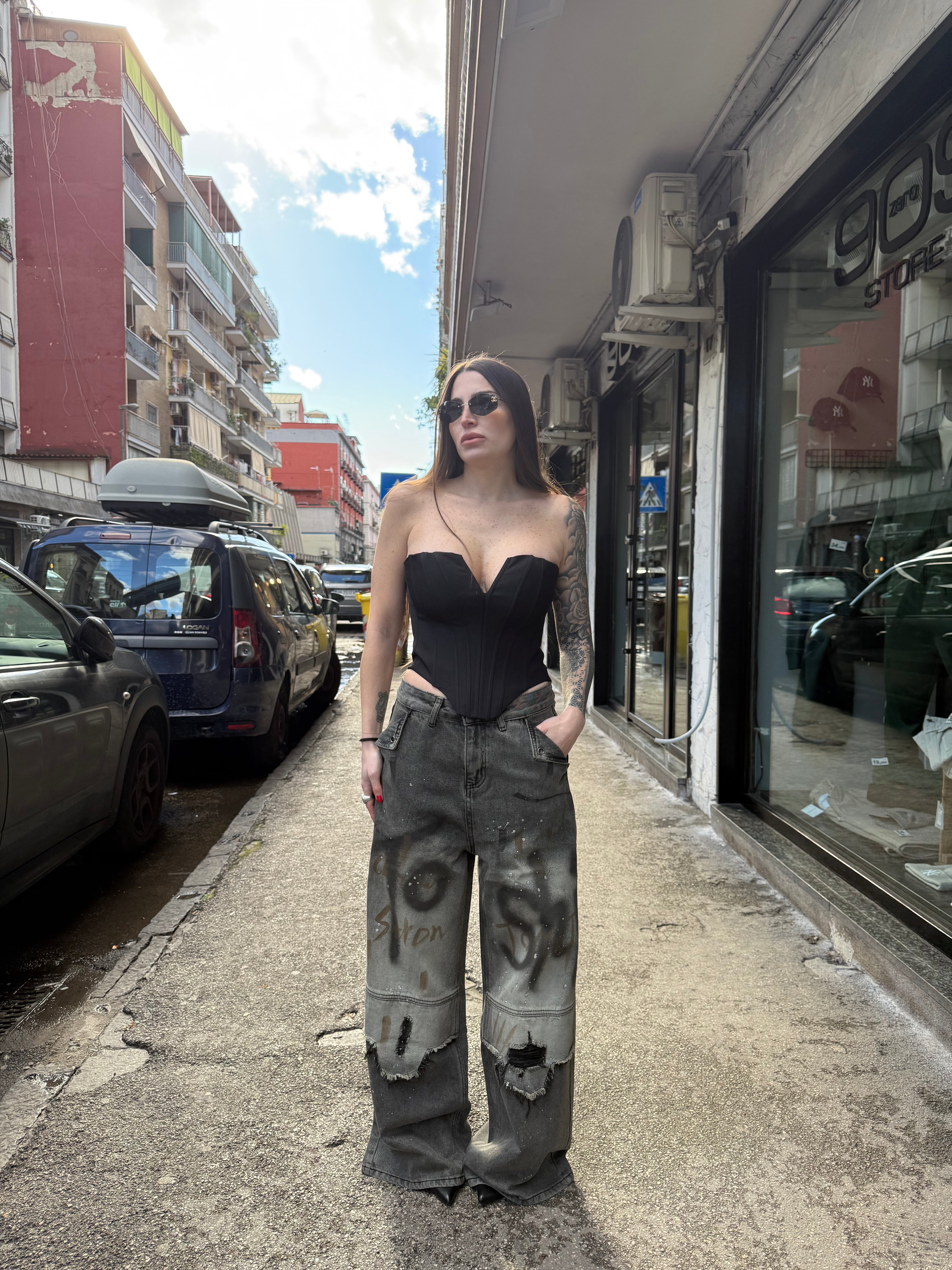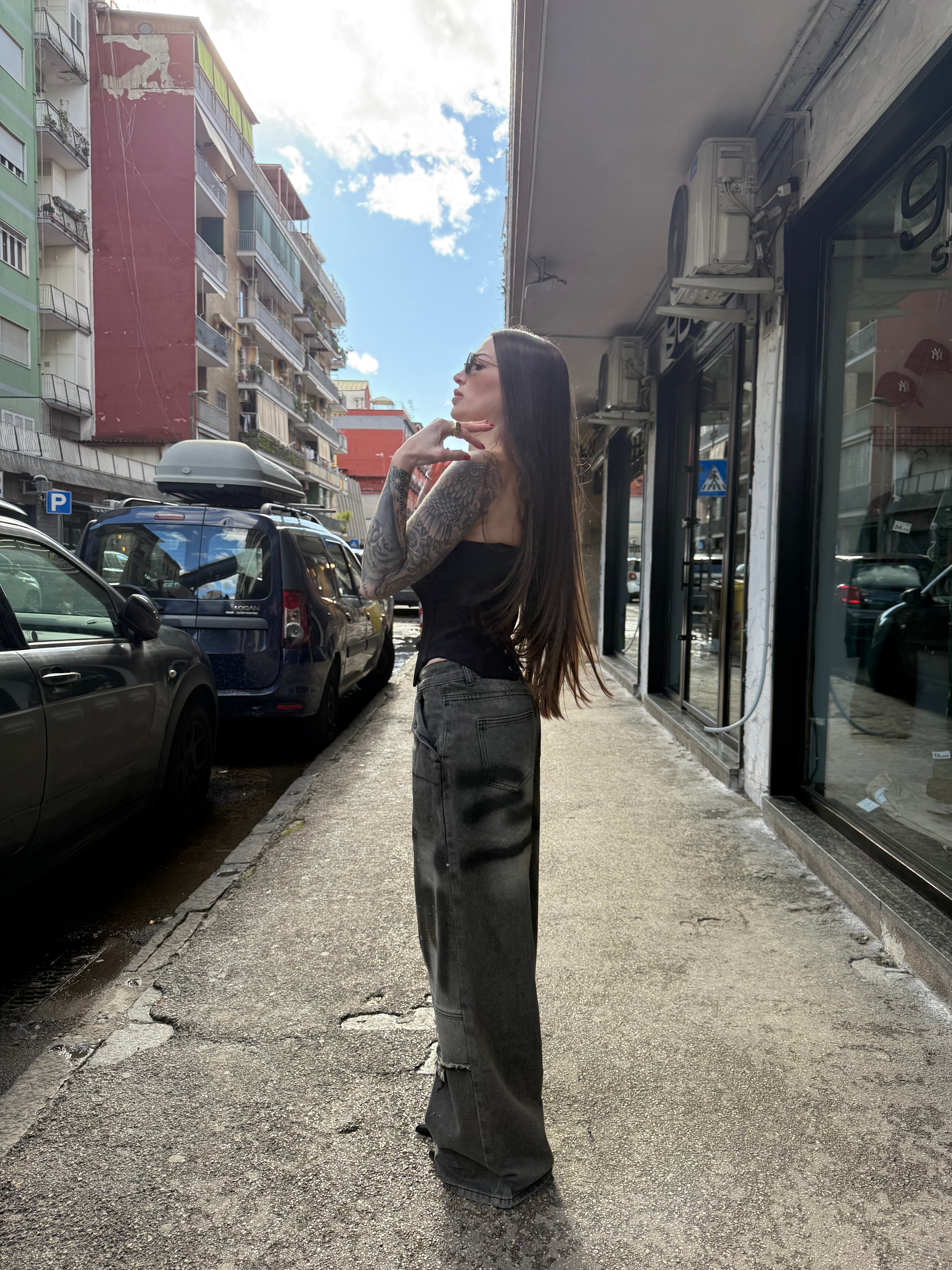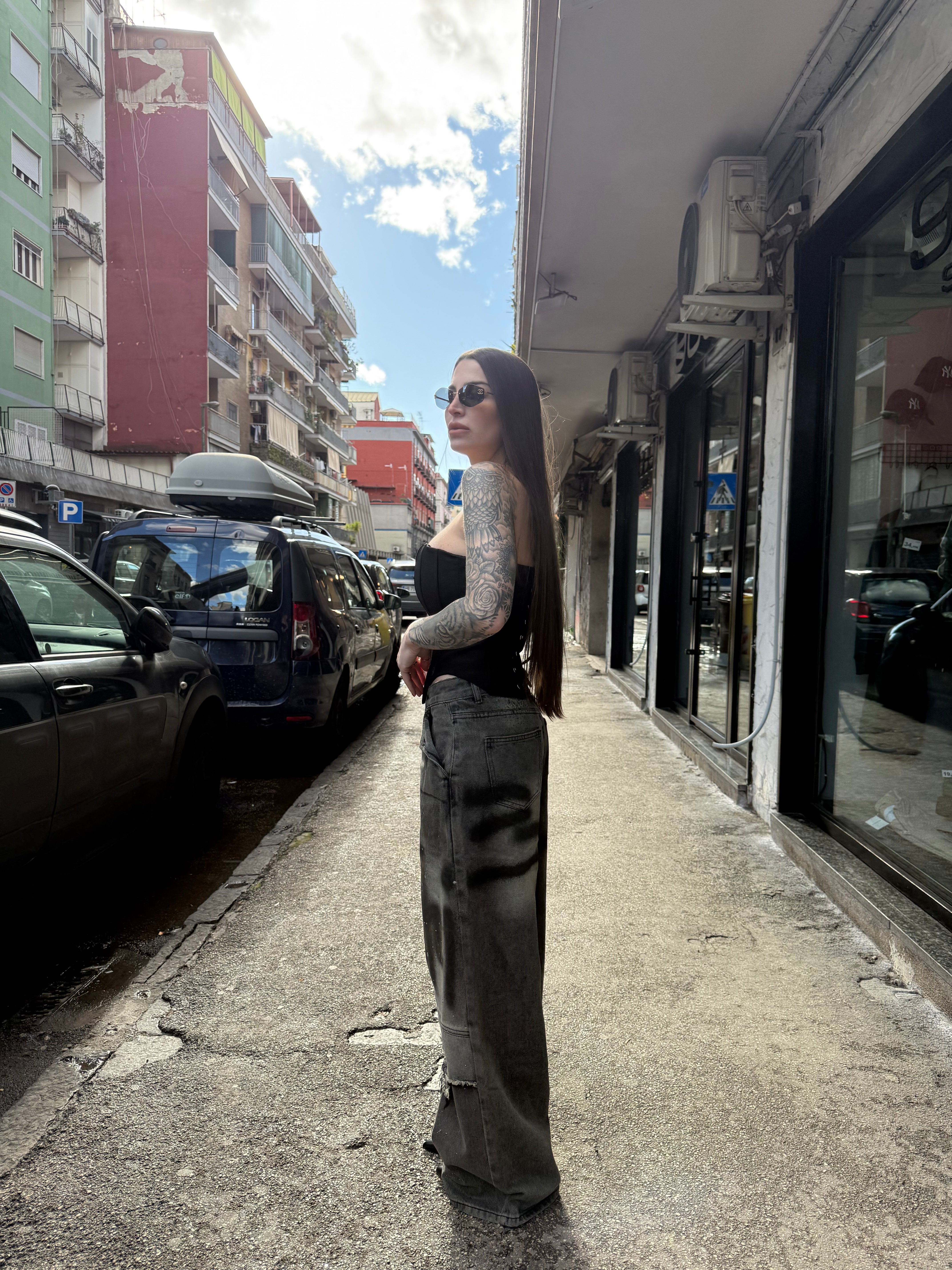 Indosso taglia M per dare un effetto a vita bassa.